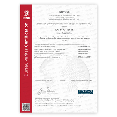 La direzione di Vanity Srl intende realizzare un’impresa fondata sui principi del rispetto, della tutela, e della salvaguardia dell’ambiente e impegnarsi nella prevenzione e nella limitazione dell’inquinamento determinato dai propri processi e dalle attività legate alla propria gestione.